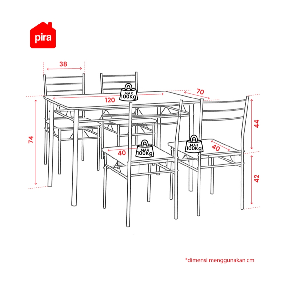 Meja Makan Pira Metropolis Stella Dts Set Dengan 4 Kursi Modern
