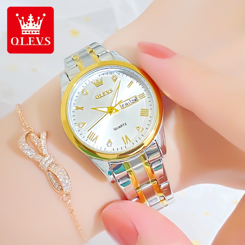 Jam Tangan Wanita Olevs Original Anti Air Tahan Kecil Korea Analog Putih Gold Black Stainless Steel