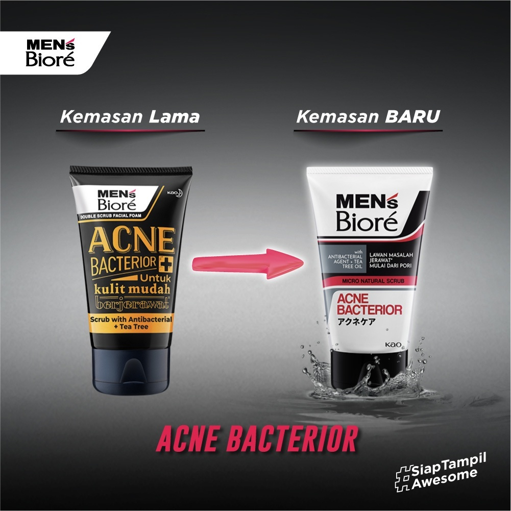 Facial Foam Biore Men Double Scrub Acne Bacterior 100Gr Lawan Jerawat