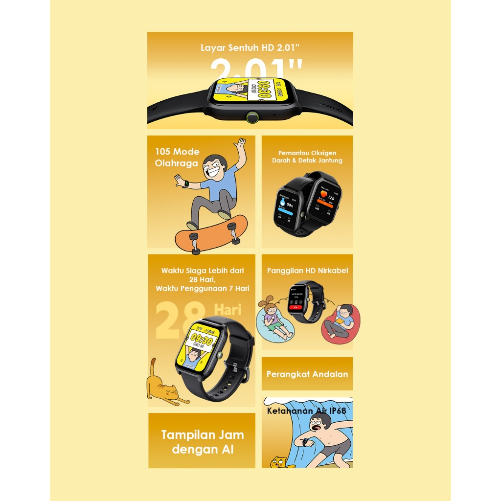 Smartwatch 2.01" Display, Bluetooth, Waterproof, Ai Dial, 100 Sports Modes Oraimo Watch 5 Max Smartwatch