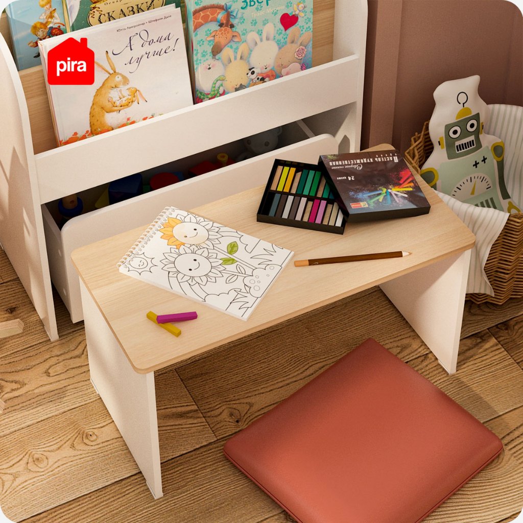Meja Belajar Anak Pira Kids Dasami Su Dengan Rak Buku Dan Penyimpanan