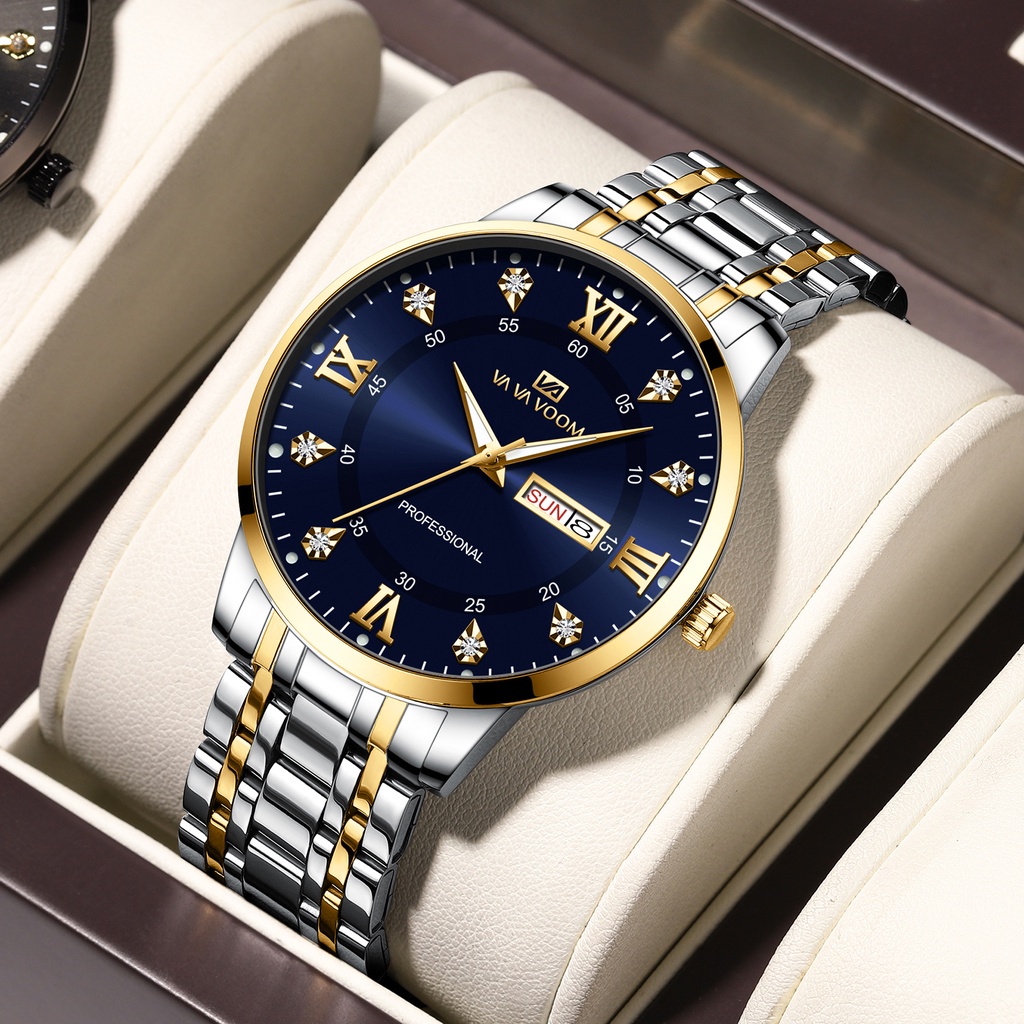 Jam Tangan Pria Va Va Voom 2461 Luxury Stainless Steel Analog Quartz Anti Air Original Free Box