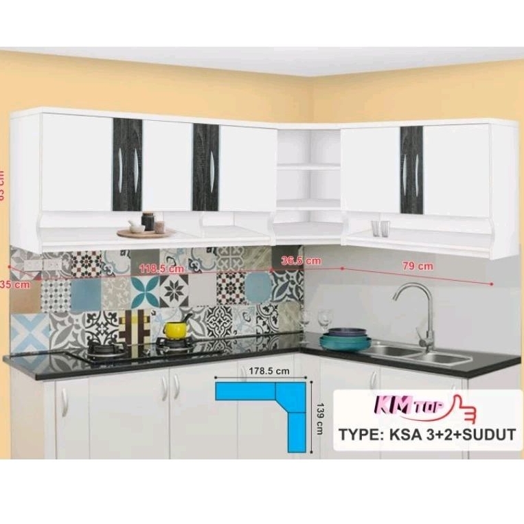 Kitchen Set 1 Set 3 Pintu Sudut Lemari Gantung Minimalis Ksa Kmtop