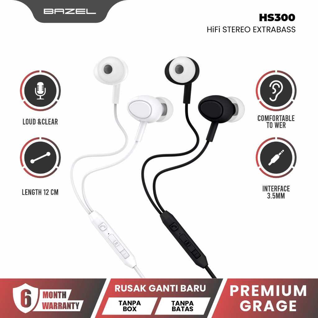 Earphone Wired Extra Bass, Mikrofon Bazel Hs300 Musik, Earphone, Headset