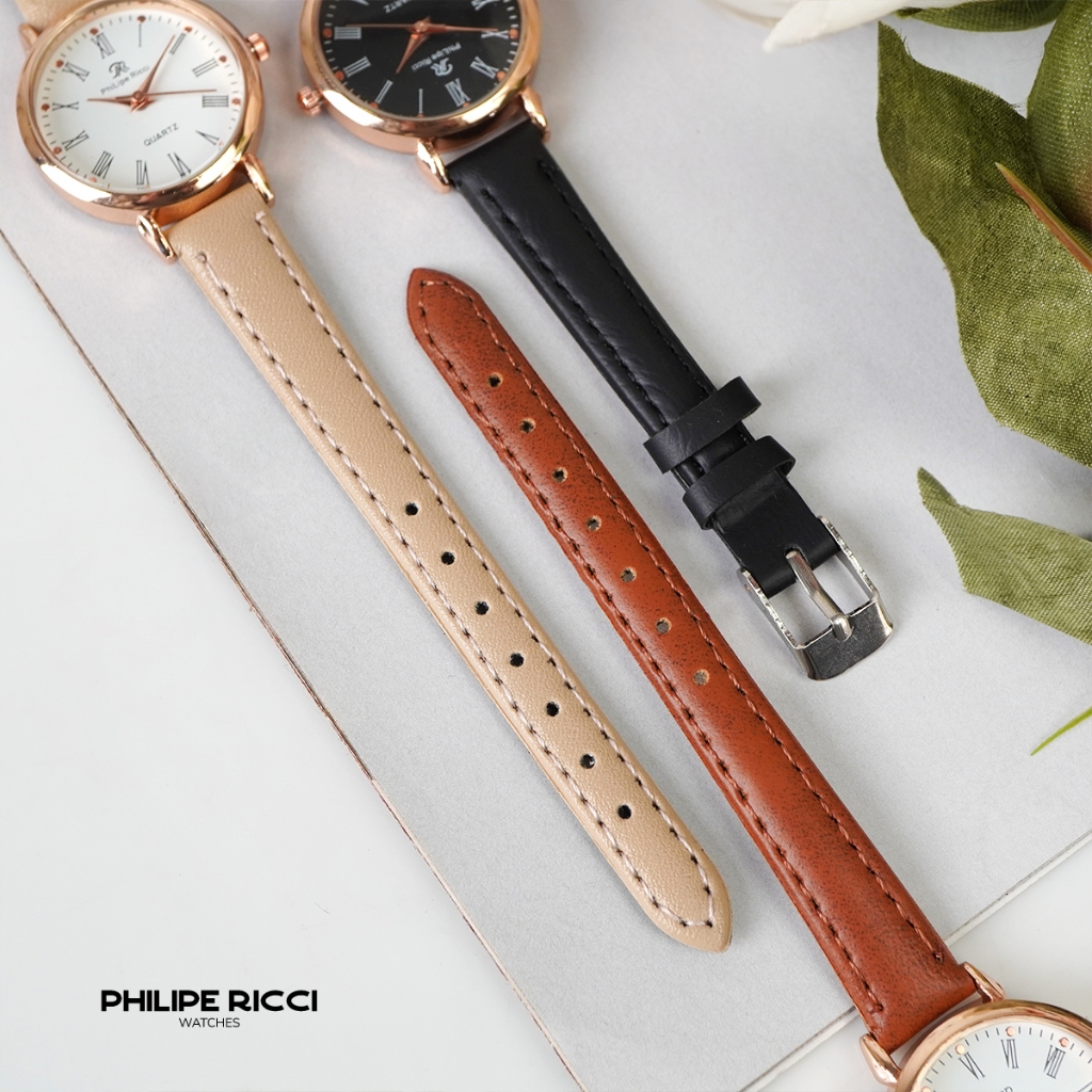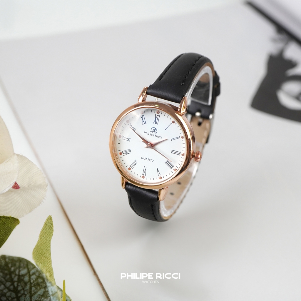 Jam Tangan Wanita Philipe Ricci Kulit Hitam Bulat Kecil Terbaru Original 6989 Free Box