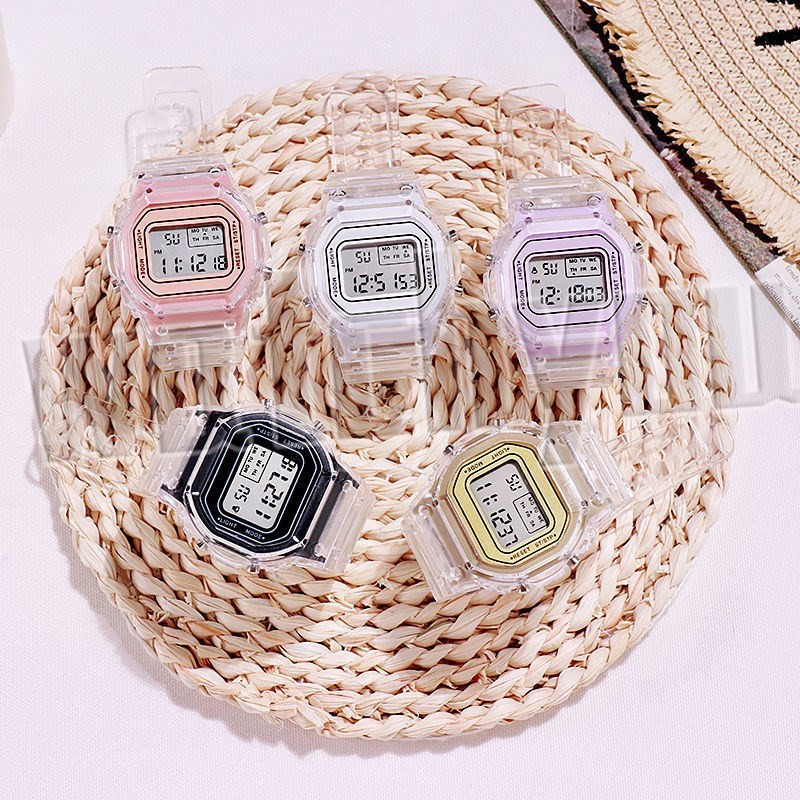 Jam Tangan Wanita Watchyou Rubber Digital Segi Transparan Sport Led Pria Wanita Couple
