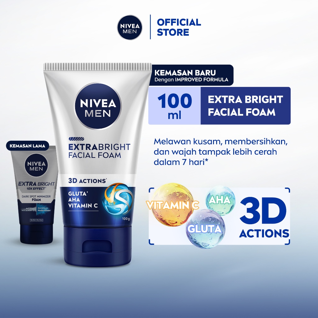 Facial Foam Nivea Men Extra Bright 100Ml Cerahkan Kulit Dengan Vitamin C