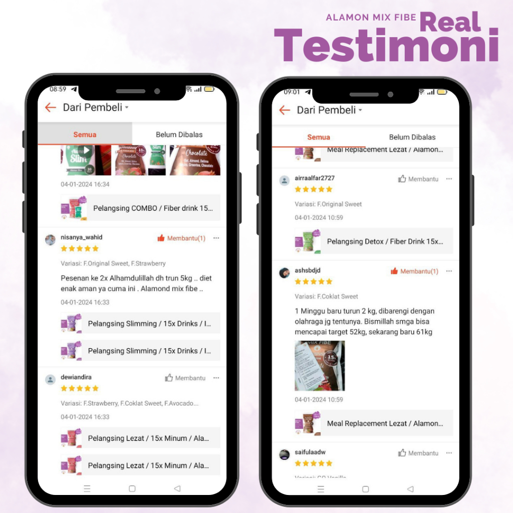 Pelangsing Alamon Mix Fibe 15x Fiber Drink Pelangsing Detox Mengurangi Lemak