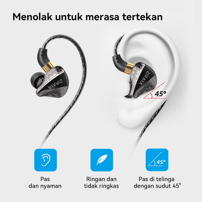 Headset Ziraya Dual Dynamic Monitor Hitam Wired Noise Cancelling Dengan Mic 120 Cm