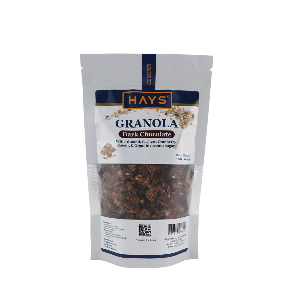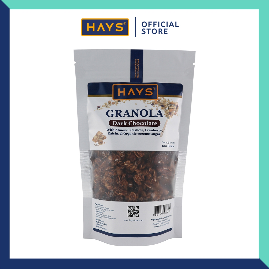 Granola Hays Dark Chocolate 100Gr Oatmeal Cokelat Almond Mete Cranberry Organic