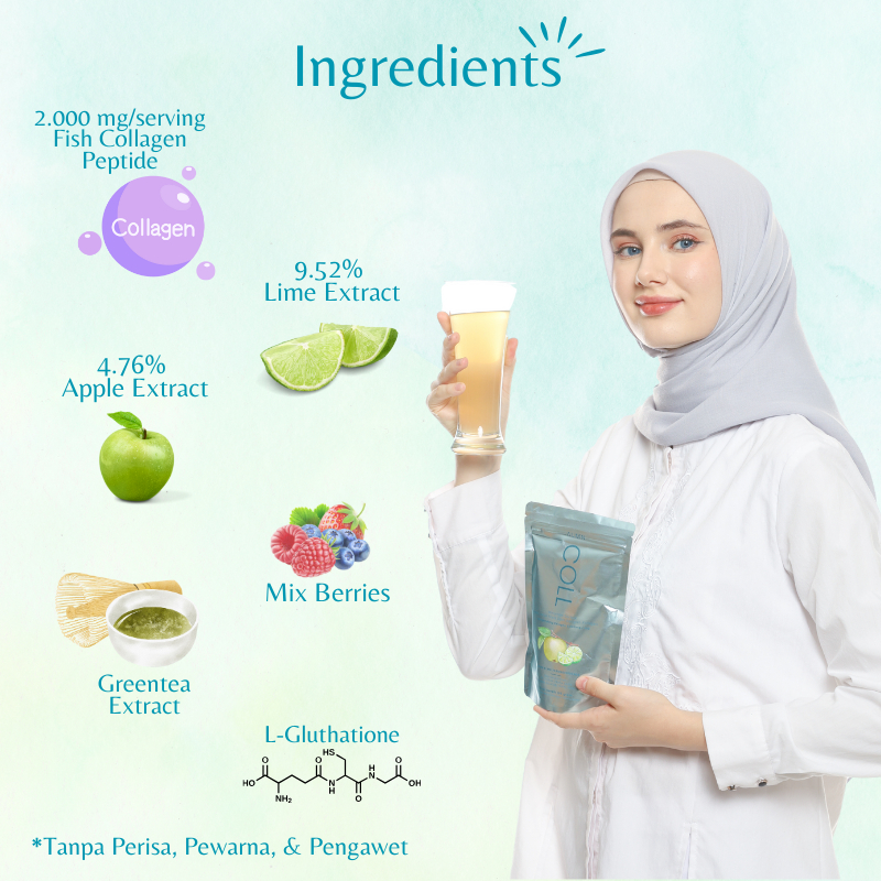 Kolagen Alamon Coll 2000mg 7x Serving Lime Apple Berries Lglutathione