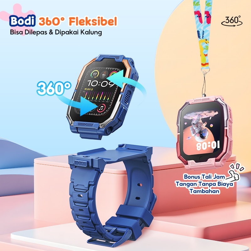 Smartwatch Anak Kiumo 4G Ip67 Gps Lbs Wi-Fi Kamera Keamanan Kids Watch Anti Air
