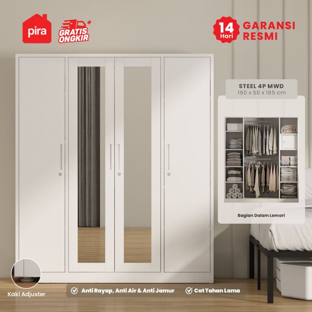 Lemari Pakaian Pira Steel 4p Mwd Besi 4 Pintu Dengan Cermin