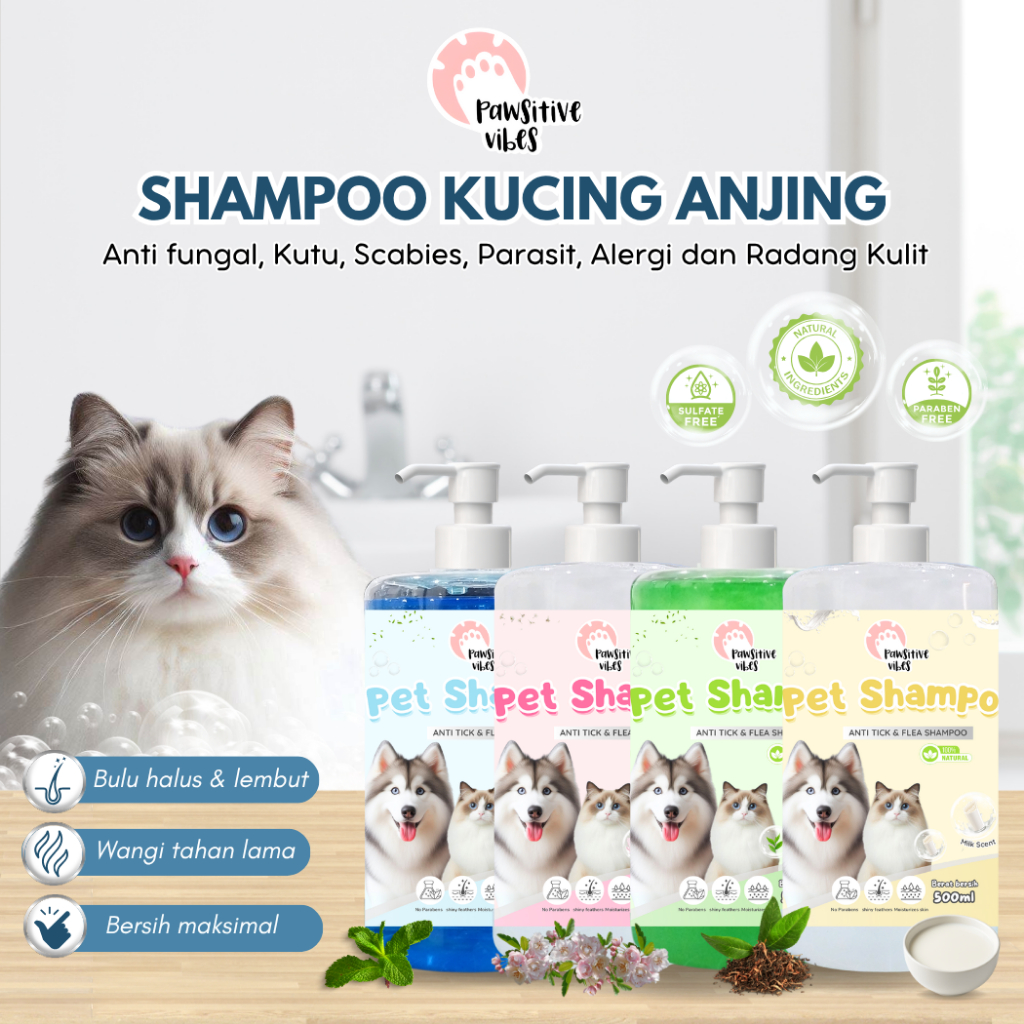 Pawsitive Vibes Shampo Kucing & Anjing Anti Fungal & Fleas Jamur, Kutu, Scabies, Alergi, Radang Kulit