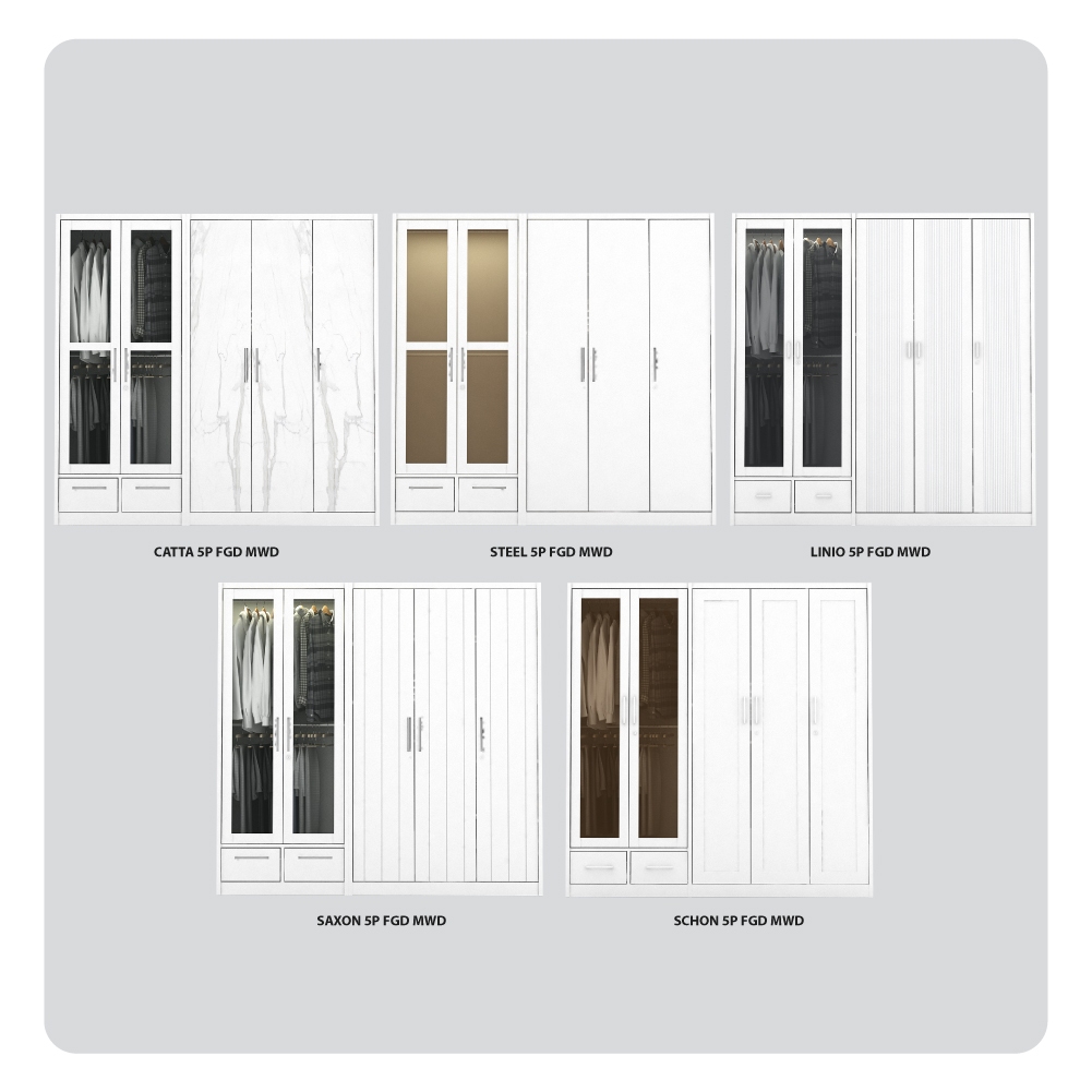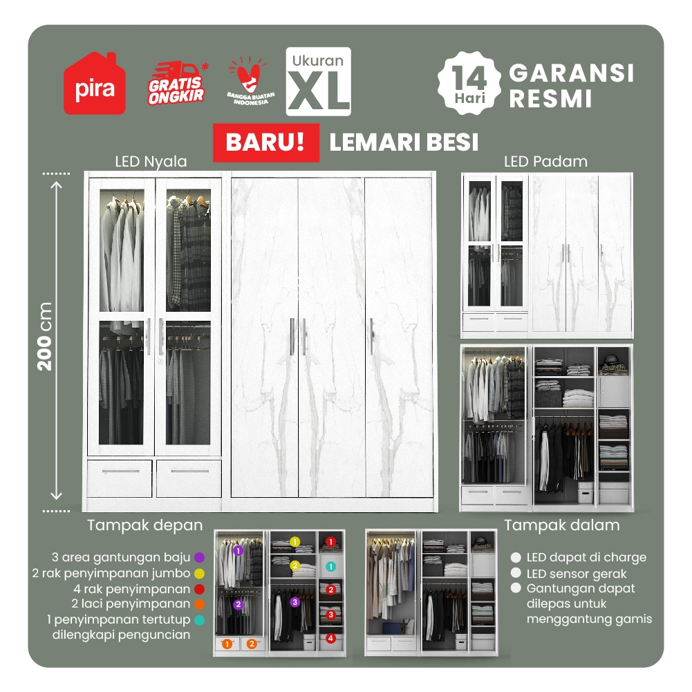 Lemari Pakaian Pira Catta 5p Fgd Mwd Besi 5 Pintu Laci Led