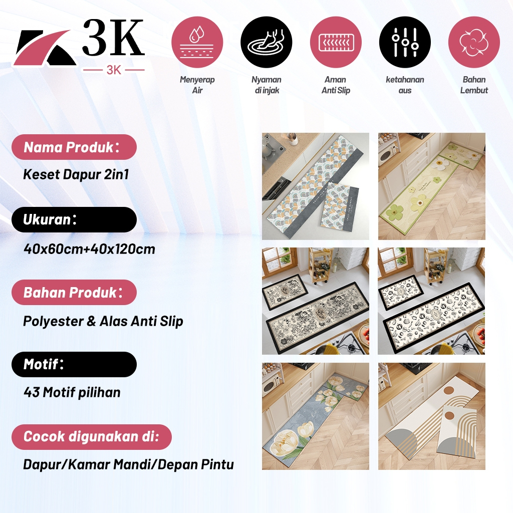Keset Dapur 2in1, 40x60cm & 40x120cm, Anti Slip 3k Surabaya Kitchen Mat Keset, Dapur