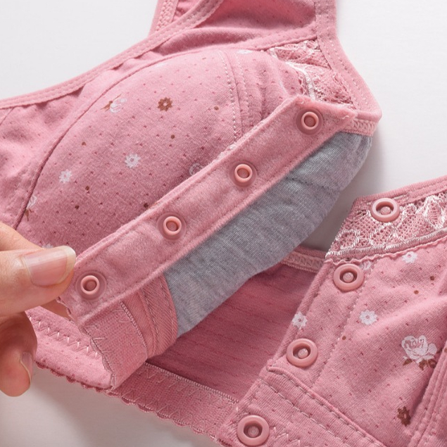 Bra Wanita Dewasa Tanpa Busa Pengait Gesper Depan Tanpa Kawat Bh Jumbo Motif Bunga Bahan Elastis