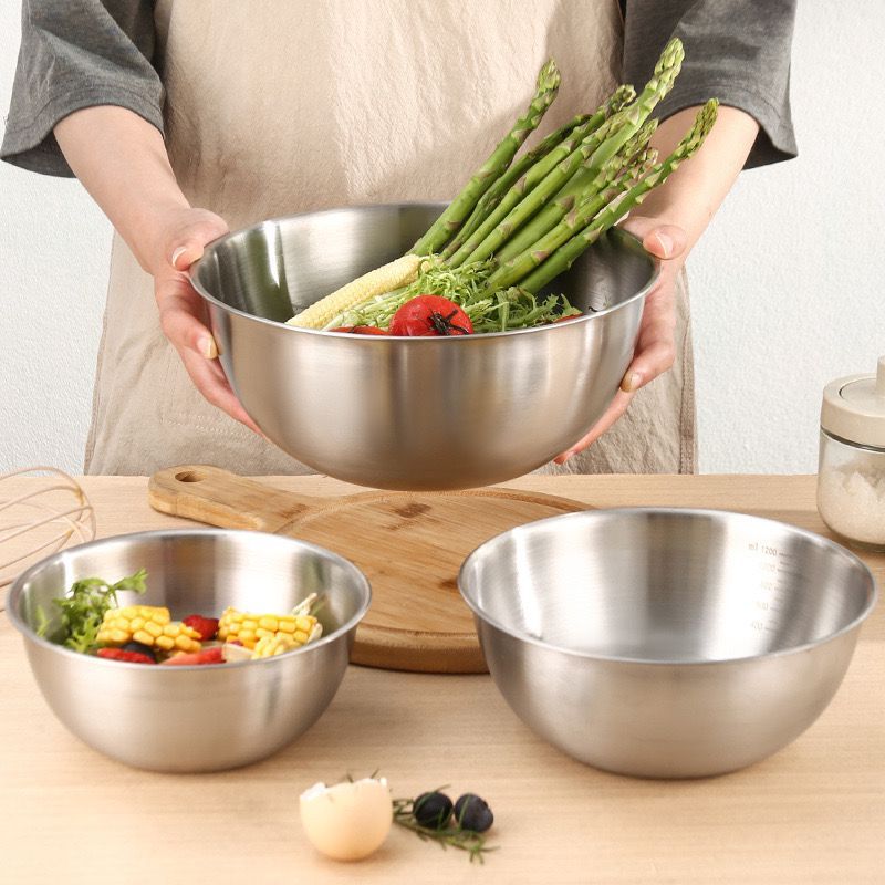 Indoline Mixing Bowl Baskom Tebal Silver Gold 22Cm 25Cm 28Cm Stainless Serbaguna
