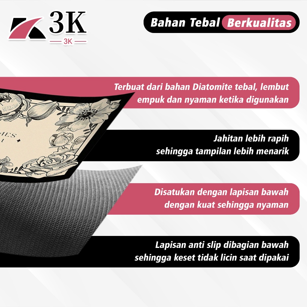 Keset Diatomite Kotak, Anti Slip, Motif Kekinian 3k Surabaya Diatomite Mat Keset, Anti Slip