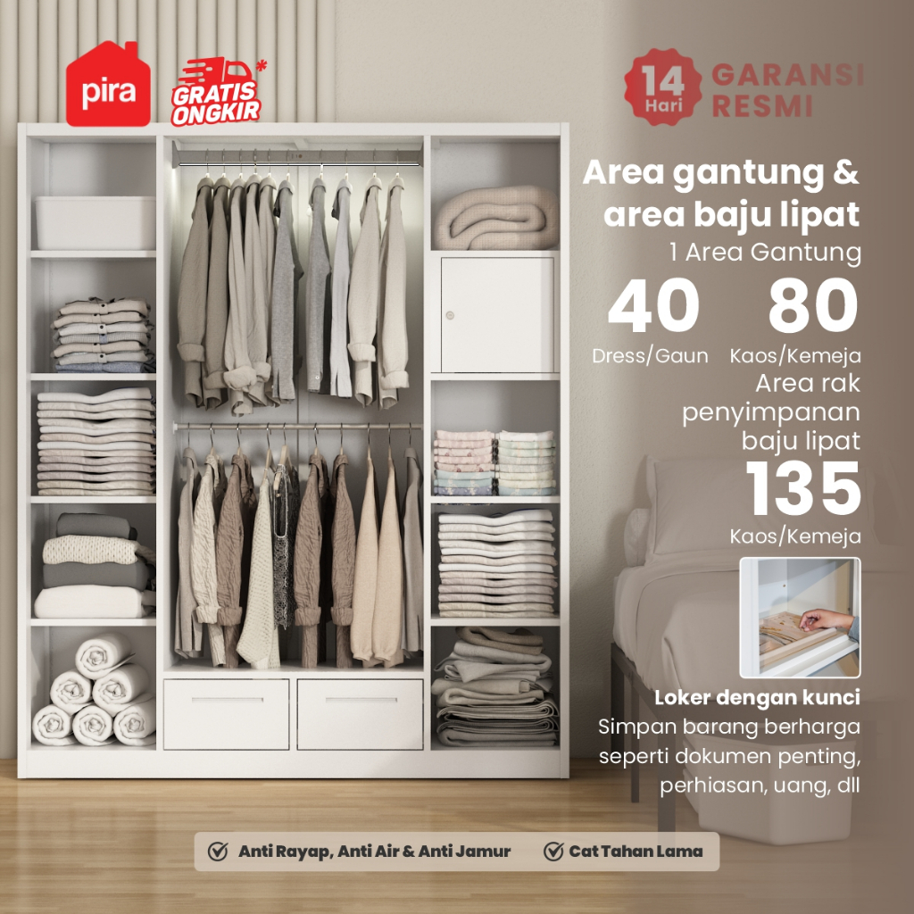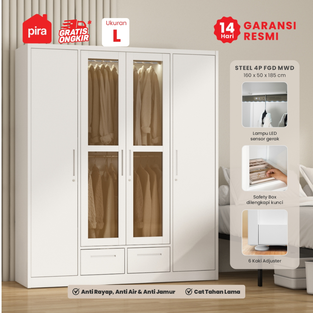 Lemari Pakaian Pira Steel 4p Fgd Mwd Besi 4 Pintu Laci Led