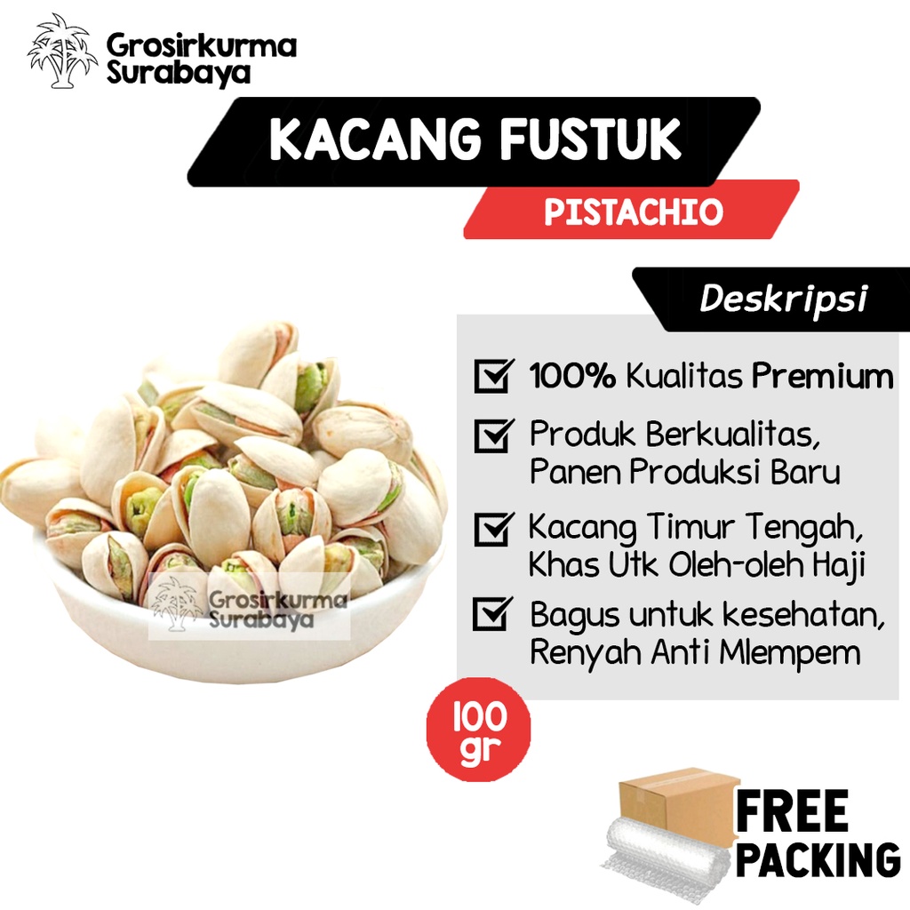 Kacang Pistachio Fustuk 100Gr Khas Timur Tengah Mpasi Almond Mede Oleh-Oleh Haji Umroh