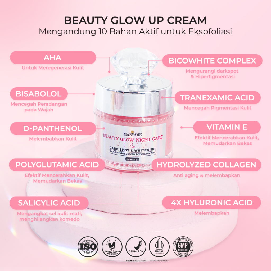 Bundling Glow Up Cream Facial Wash & Night Care Maryame Bundling Perawatan Kulit Lengkap