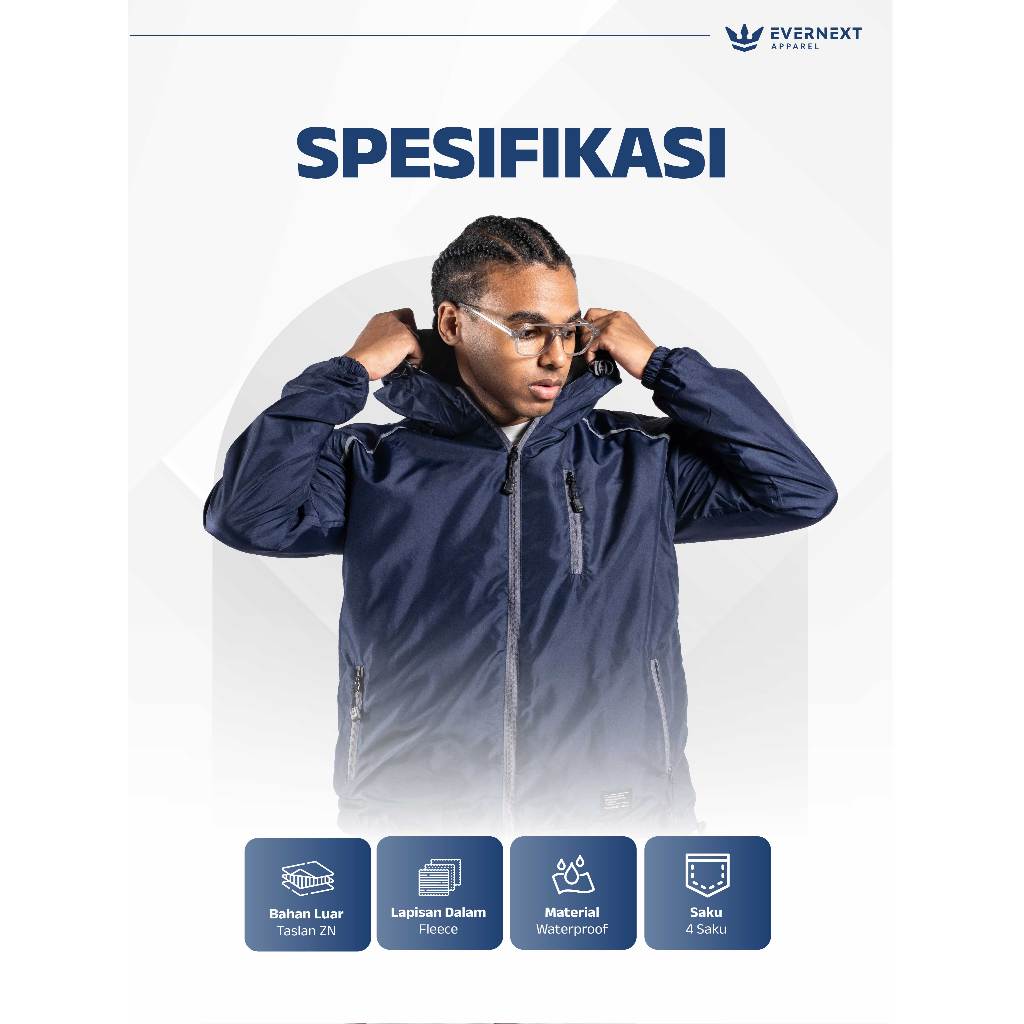 Jaket Pria Evernext Parasut Hoodie Regen Jacket Outdoor Distro Stylish
