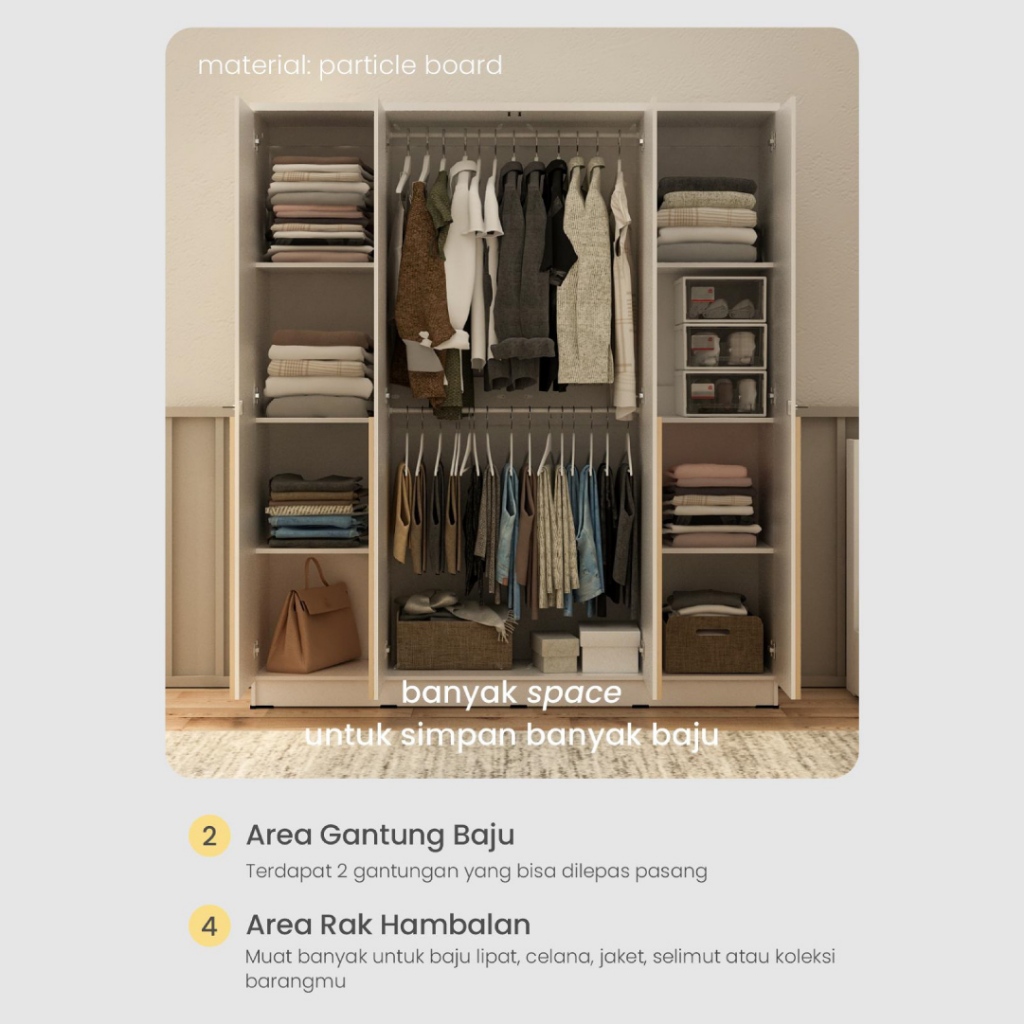 Lemari Pakaian Pira Metropolis Yona Ava 4p 4 Pintu Minimalis