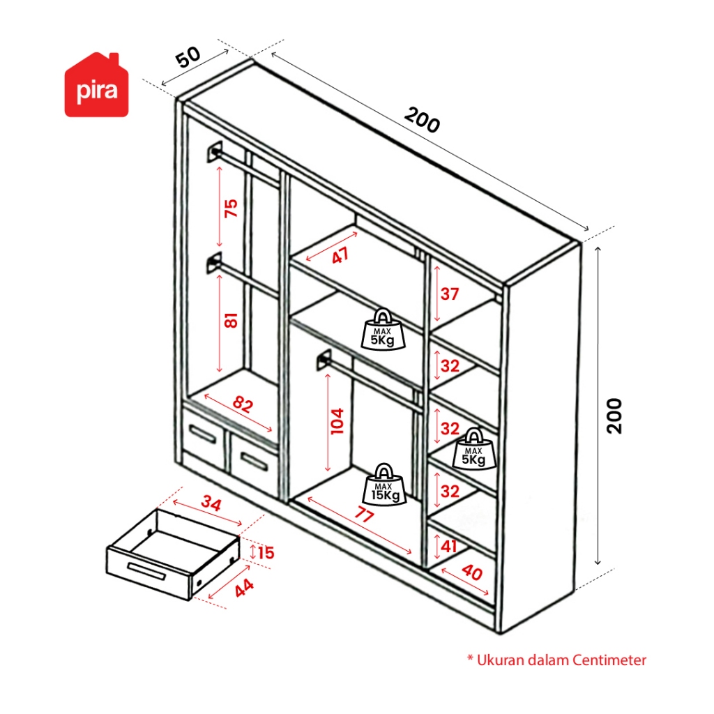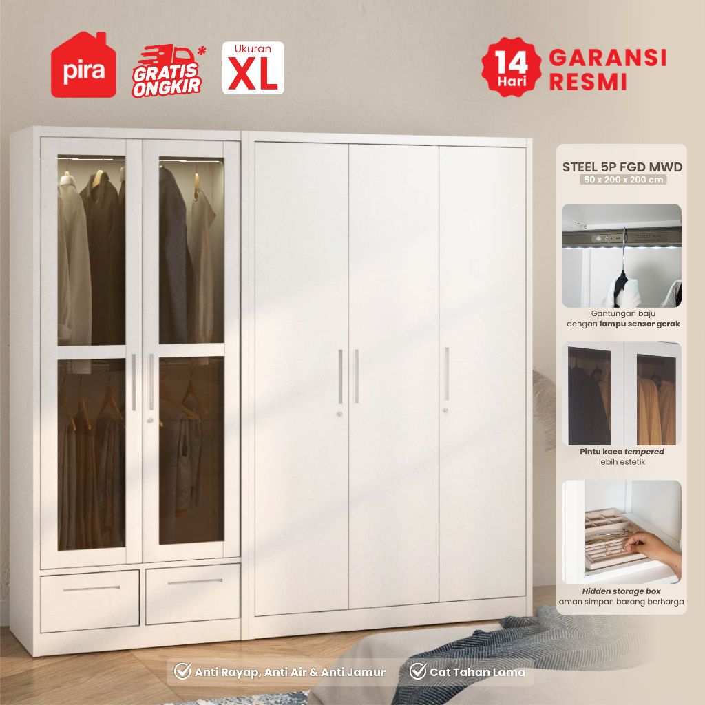 Lemari Pakaian Pira Steel 5p Fgd Mwd Besi 5 Pintu Laci Led