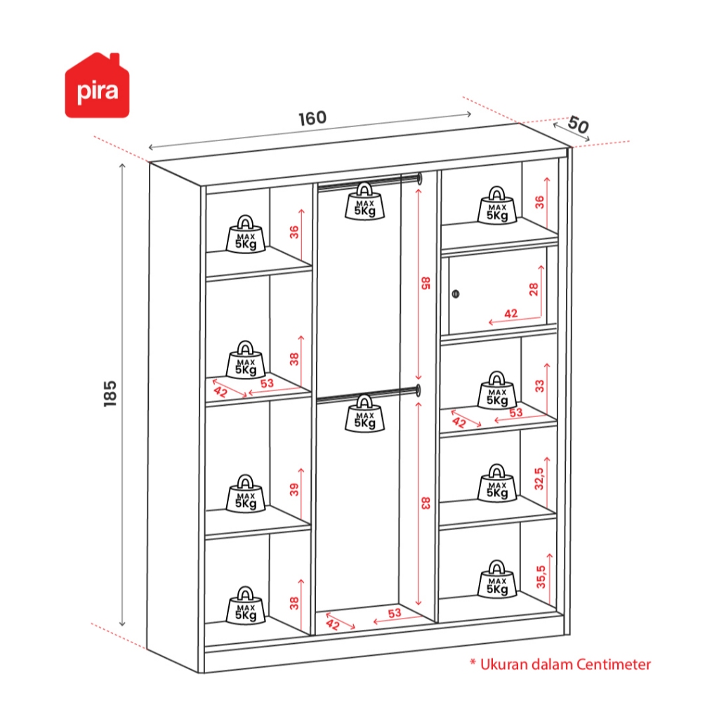 Lemari Pakaian Besi Sliding Pintu Geser Pira Linio 160 Mwsdl Storage Minimalis