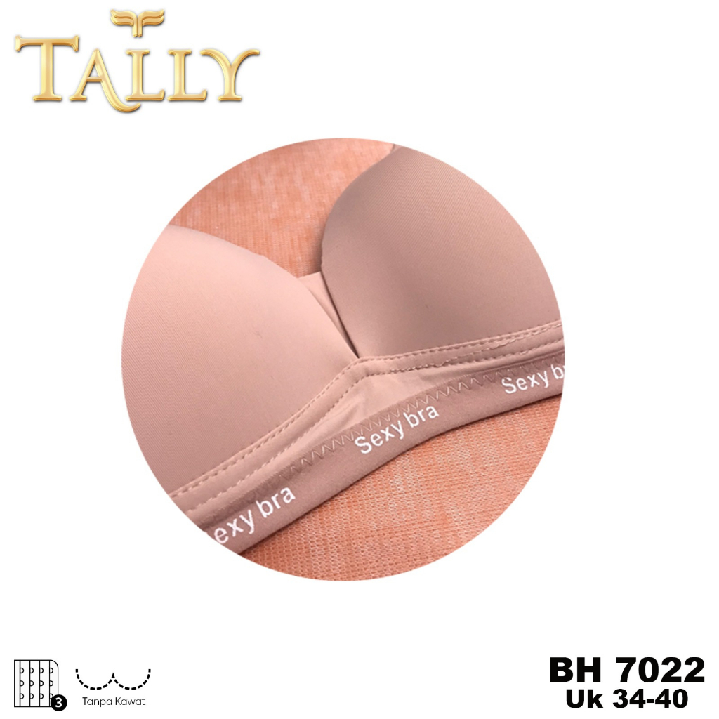 TALLY BH 7022 Bra Busa Tipis Tanpa Kawat Bahan Nylon Cup B Kait 3 Bh Harian Nyaman