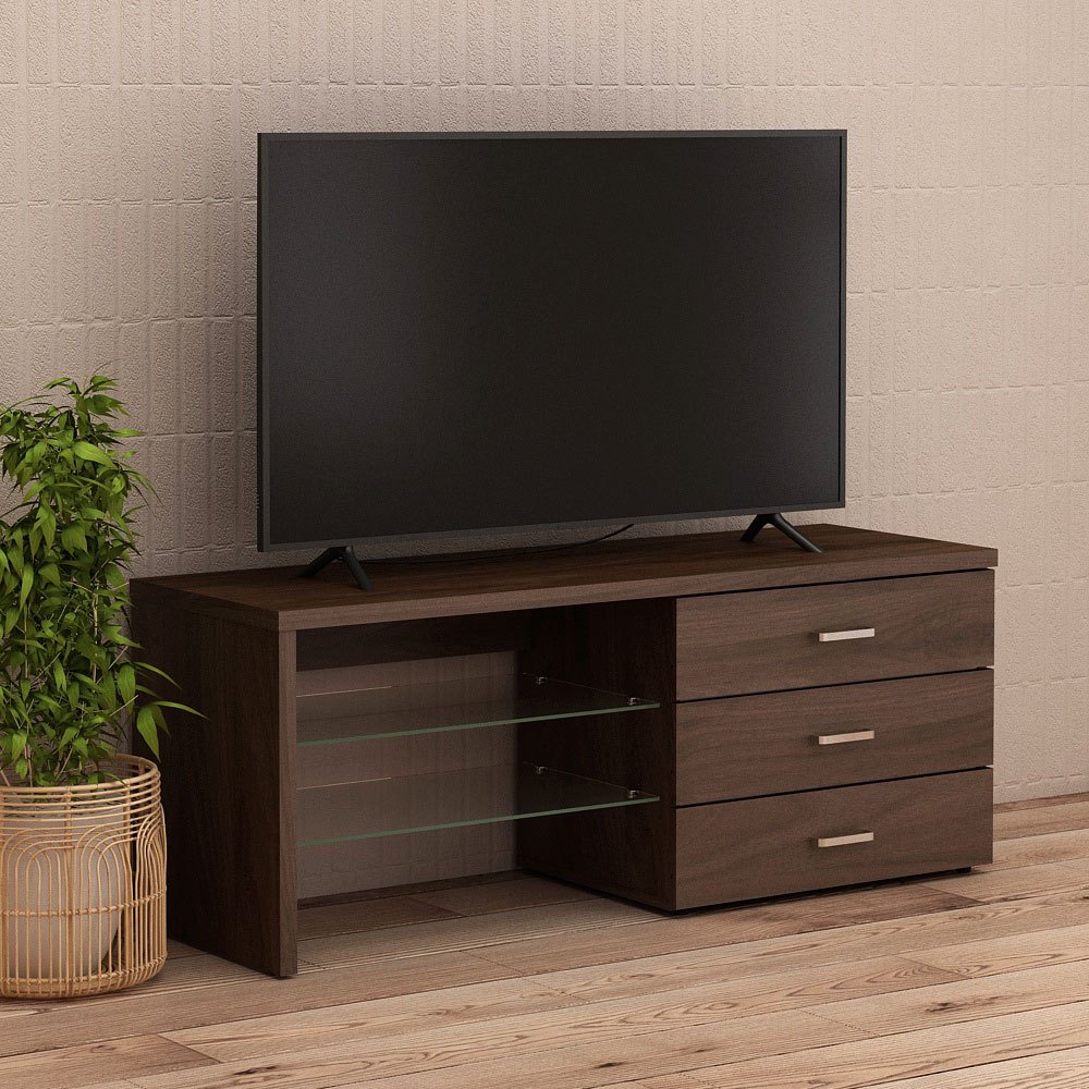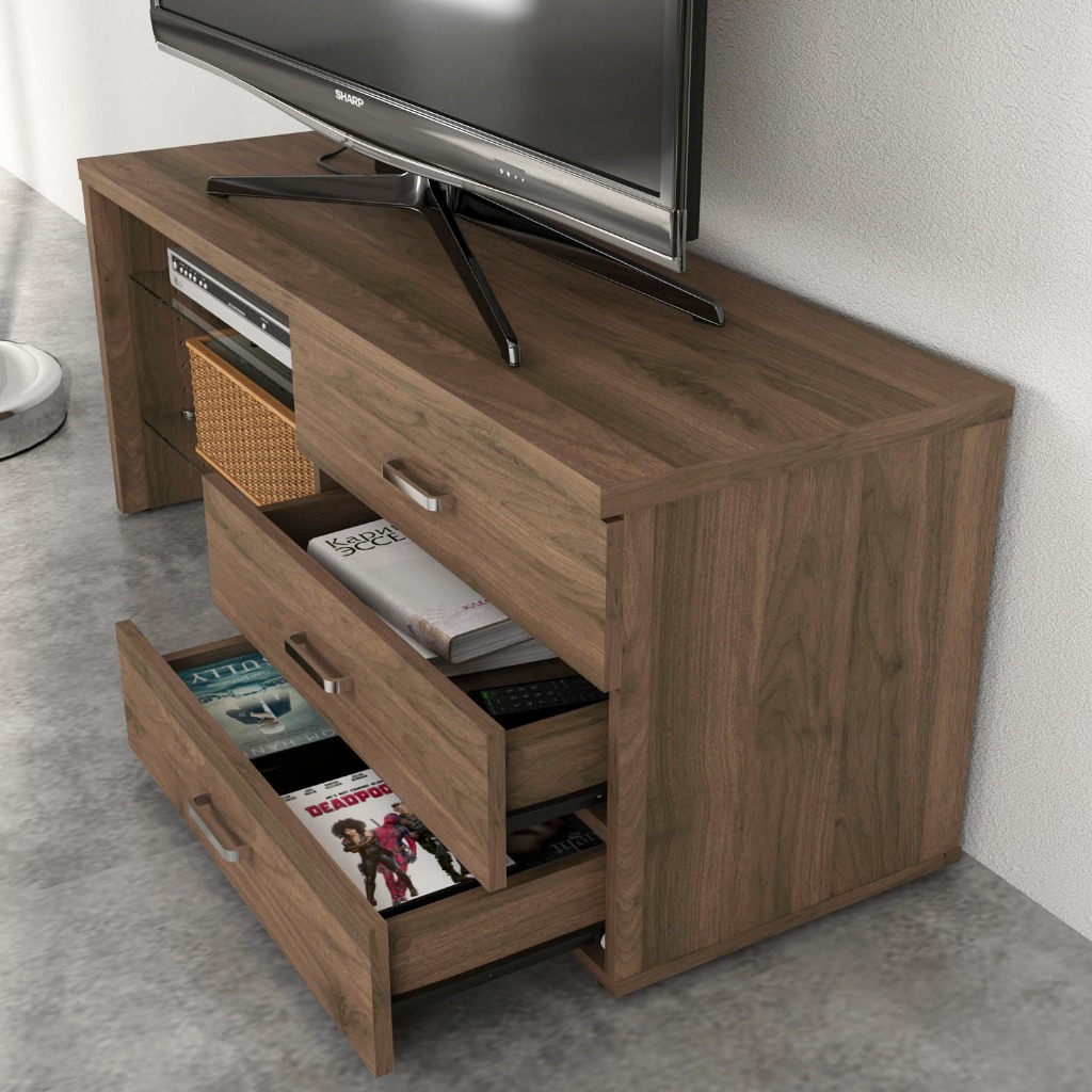 Meja Tv Rak Tv Kayu Gelap Brown Walnut Pira Bavarian Toto Tv Furniture Minimalis