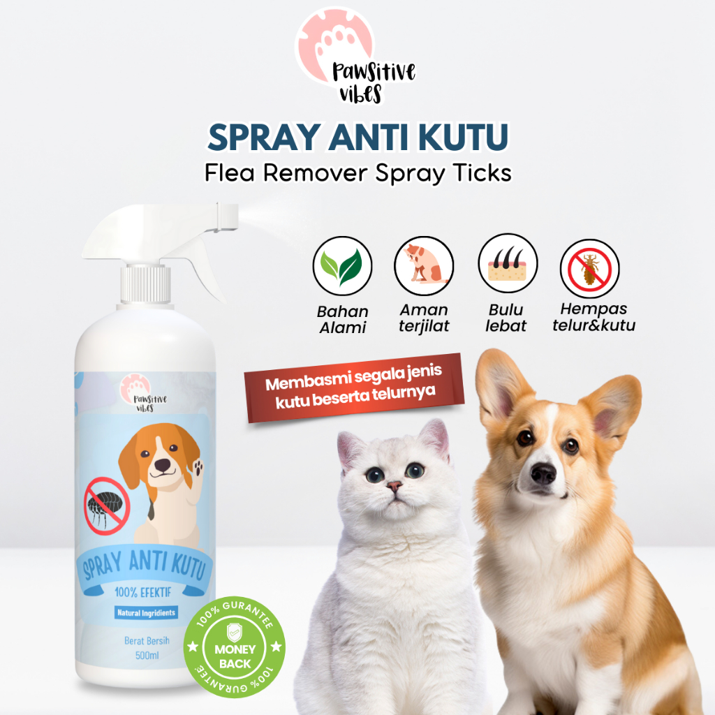 Flea Tick Remover Spray 500ml Pawsitive Vibes Anti Kutu Kucing & Anjing Membasmi Kutu & Telurnya