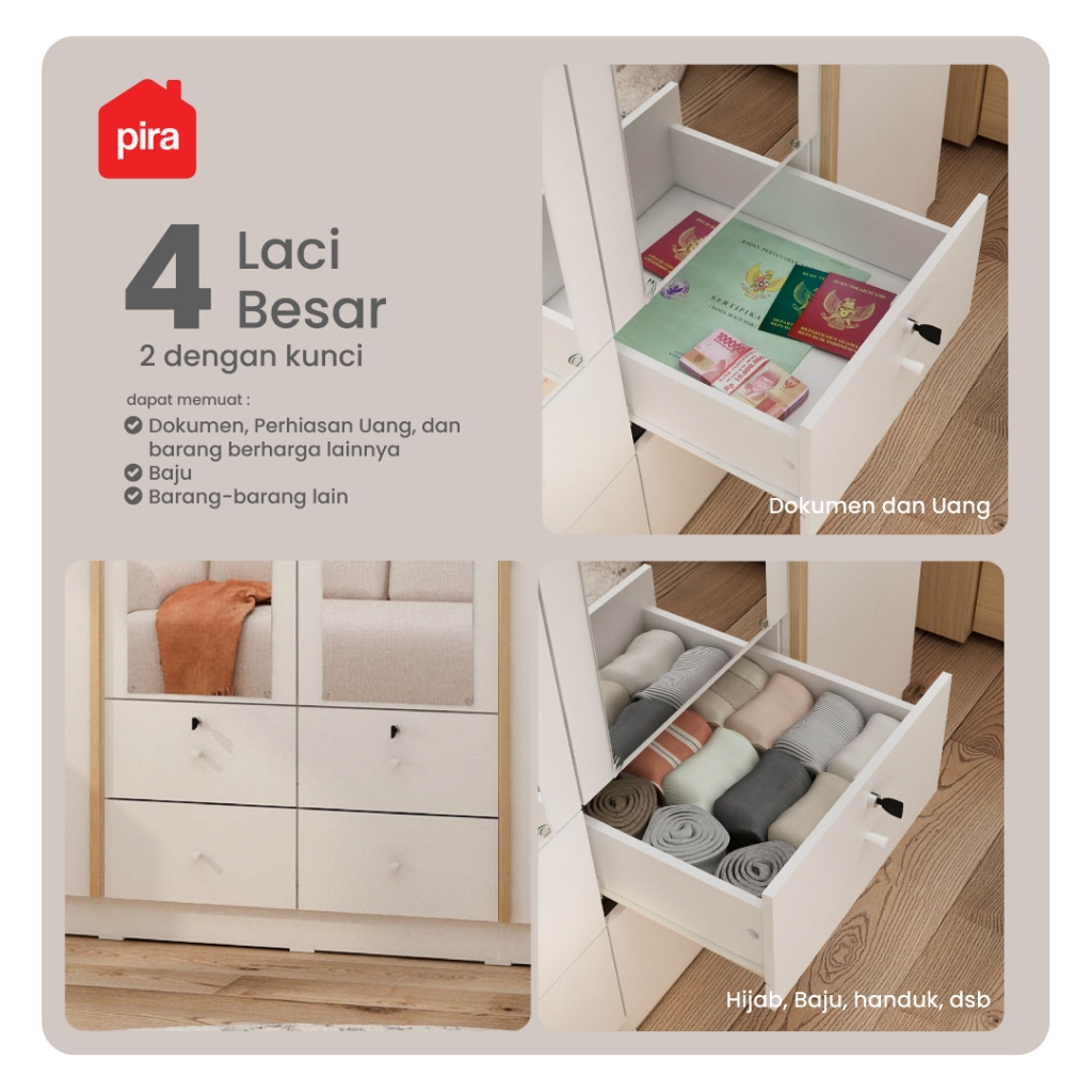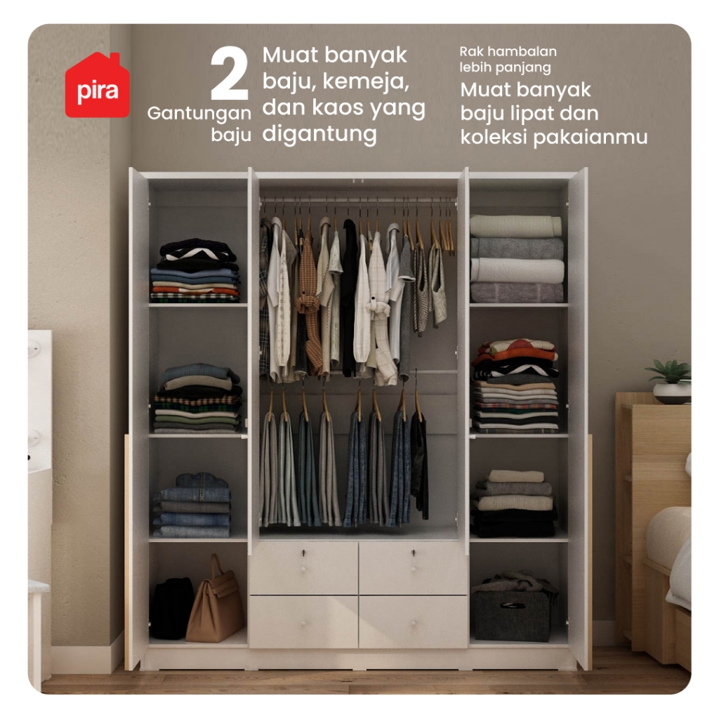 Lemari Pakaian Pira Metropolis Yona 4p 4dr 4 Pintu 4 Laci