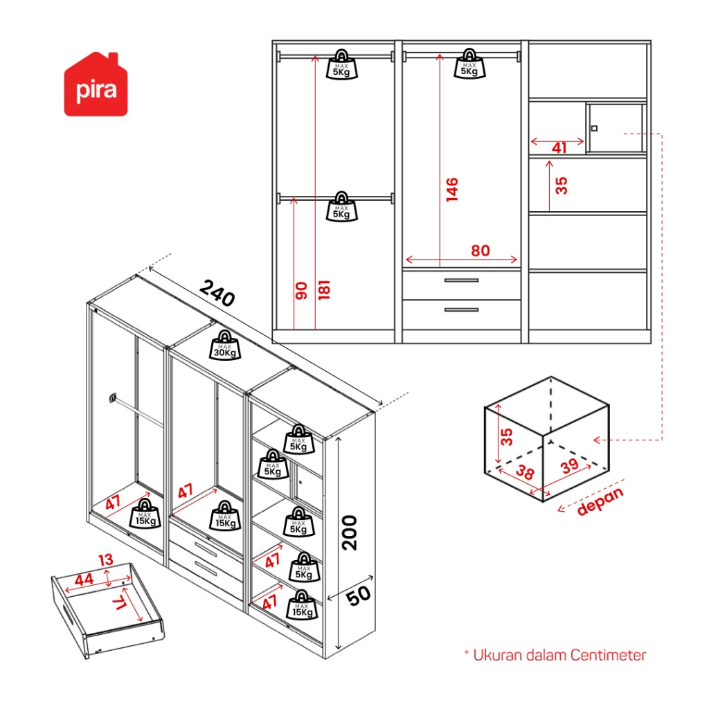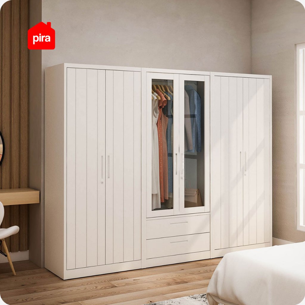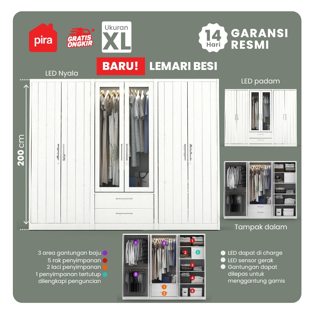 Lemari Pakaian Pira Saxon 6p Fgd Mwd Besi 6 Pintu Laci Led