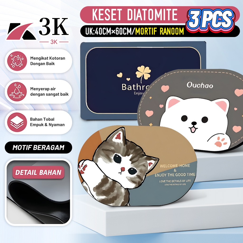 Paket Keset Diatomite Anti Slip, 40x60cm, Nyerap Air 3k Surabaya 3pcs Diatomite Mat Keset, Anti Slip