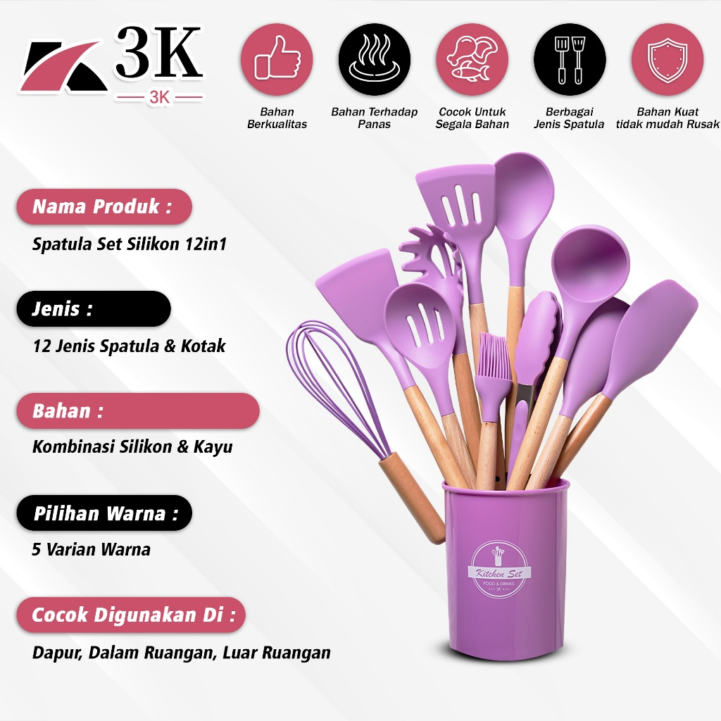 Set Spatula Silicone 11pcs, Wadah Tahan Panas 3k Surabaya Silicone Spatula Peralatan Masak