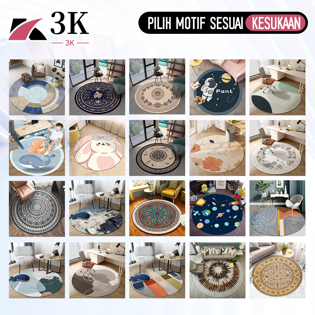 Karpet Lantai Bulat, Polyester, Uk 90x90cm & 120x120cm 3k Surabaya Bulat Karpet Karpet, Lantai
