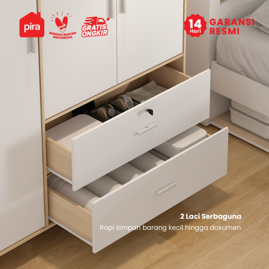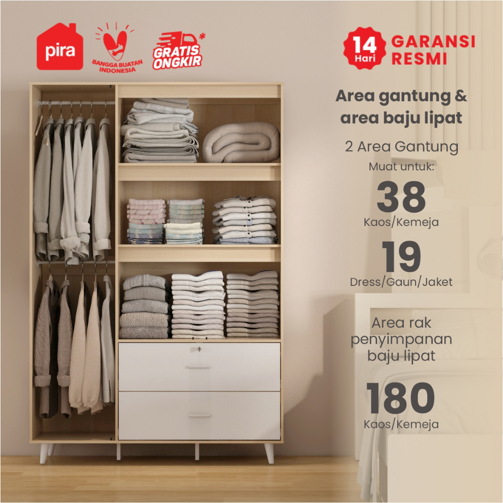Lemari Pakaian Pira Belatrix Wd3 2dr 3 Pintu 2 Laci Minimalis