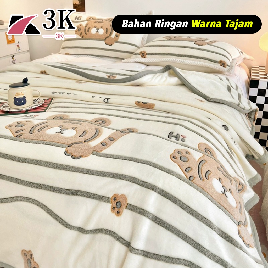Selimut Bulu Flanel Polyester, Uk 150x200cm, Motif Elegan 3k Surabaya Flannel Blanket Selimut, Bulu