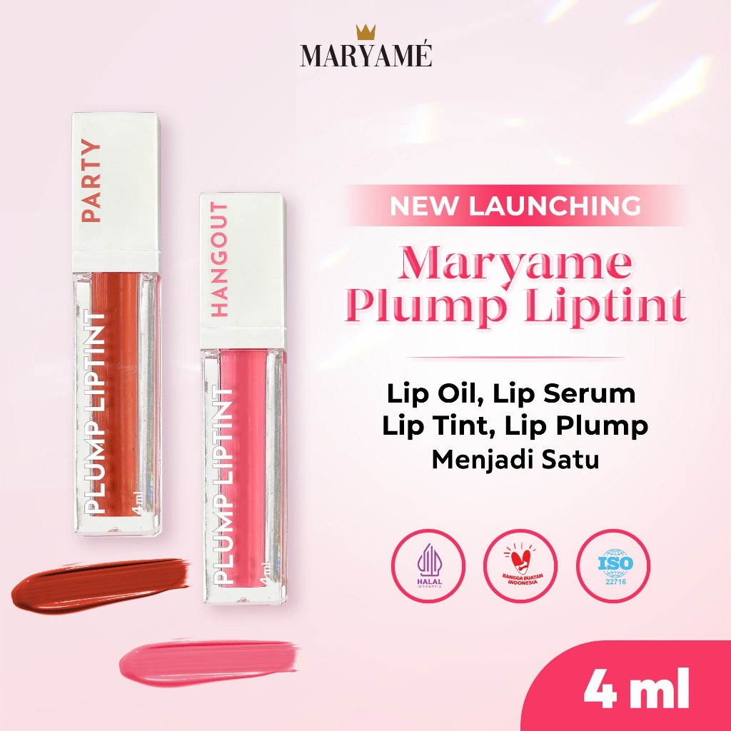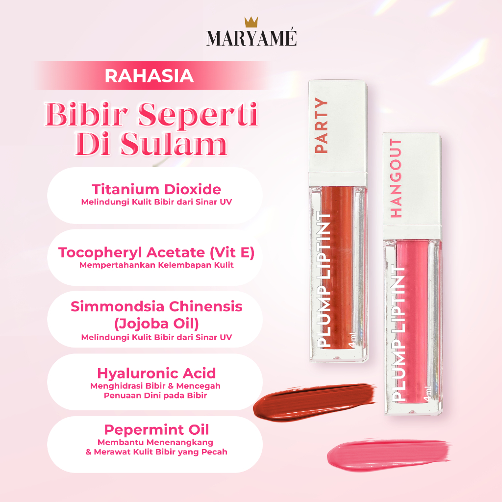 Bundling Lip Tint Hyaluronic & Vitamin E Maryame Bundling Plump Lip Tint Party & Hangout Bibir Cerah