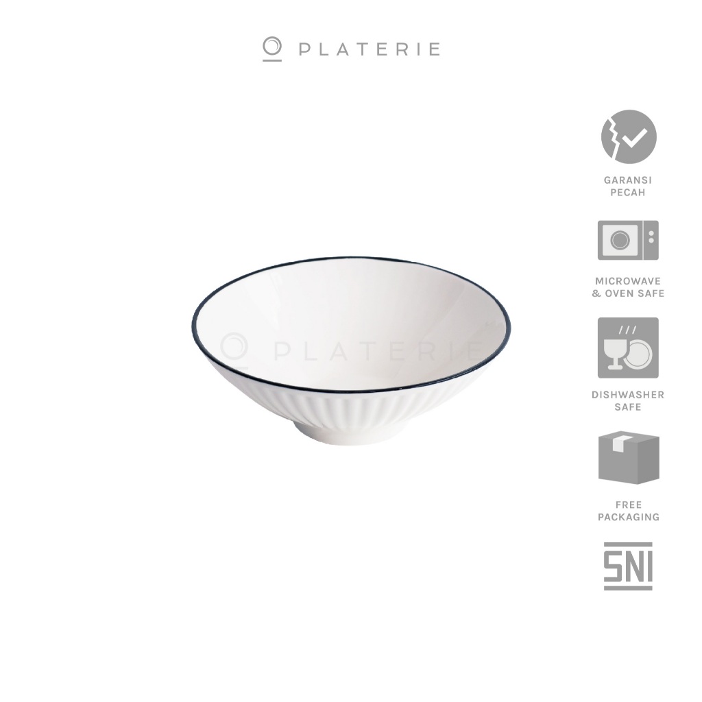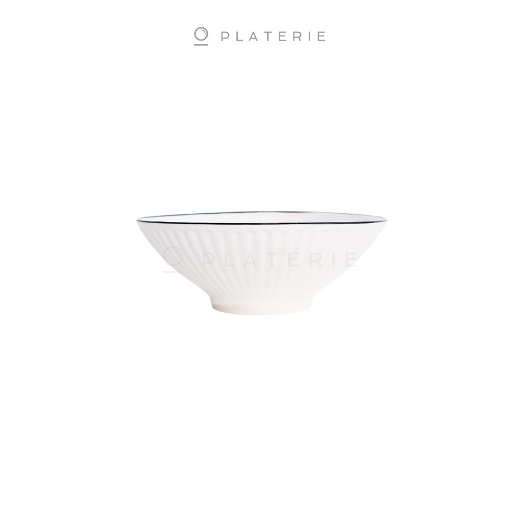 Mangkok Platerie Porcelain Embossed Ramen Bowl 8 Inch Textured White
