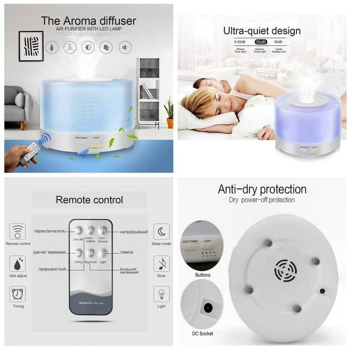 Diffuser Humidifier Aromaterapi, Led 7 Warna Upupin Pelembab Udara, Aromaterapi