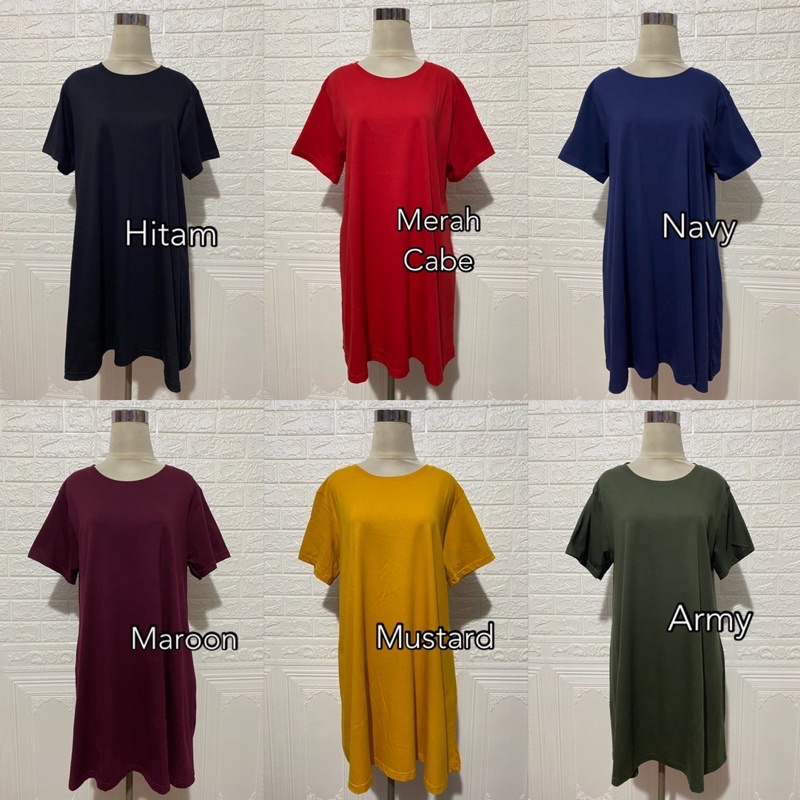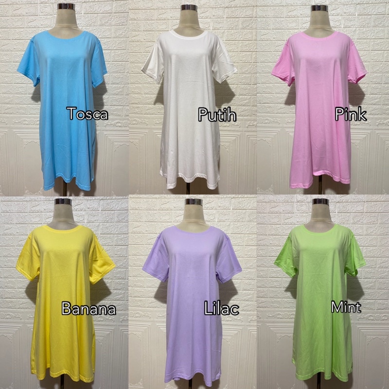 BASIC DRESS KAOS COTTON COMBED 30S PLAIN KATUN TUNIK MIDI POLOS ADEM CASUAL LILAC PASTEL SAGEGREEN MURAH