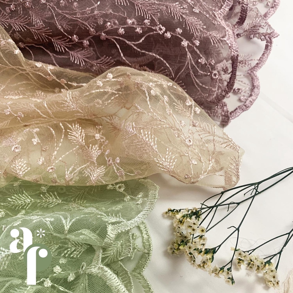 Kain Brokat Premium Willow Motif Tile Prancis 0.5 Meter Untuk Kebaya Hijab Bridesmaid