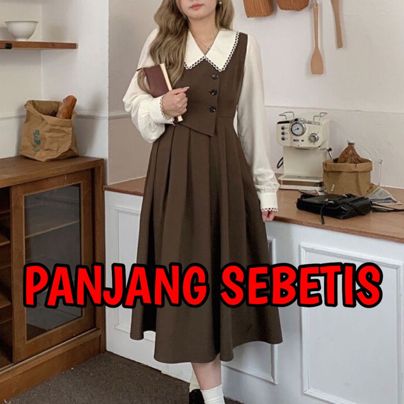 #DR96 TUXEDO DRESS KANCING LENGAN PANJANG WANITA MOTIF KERAH BORDIR