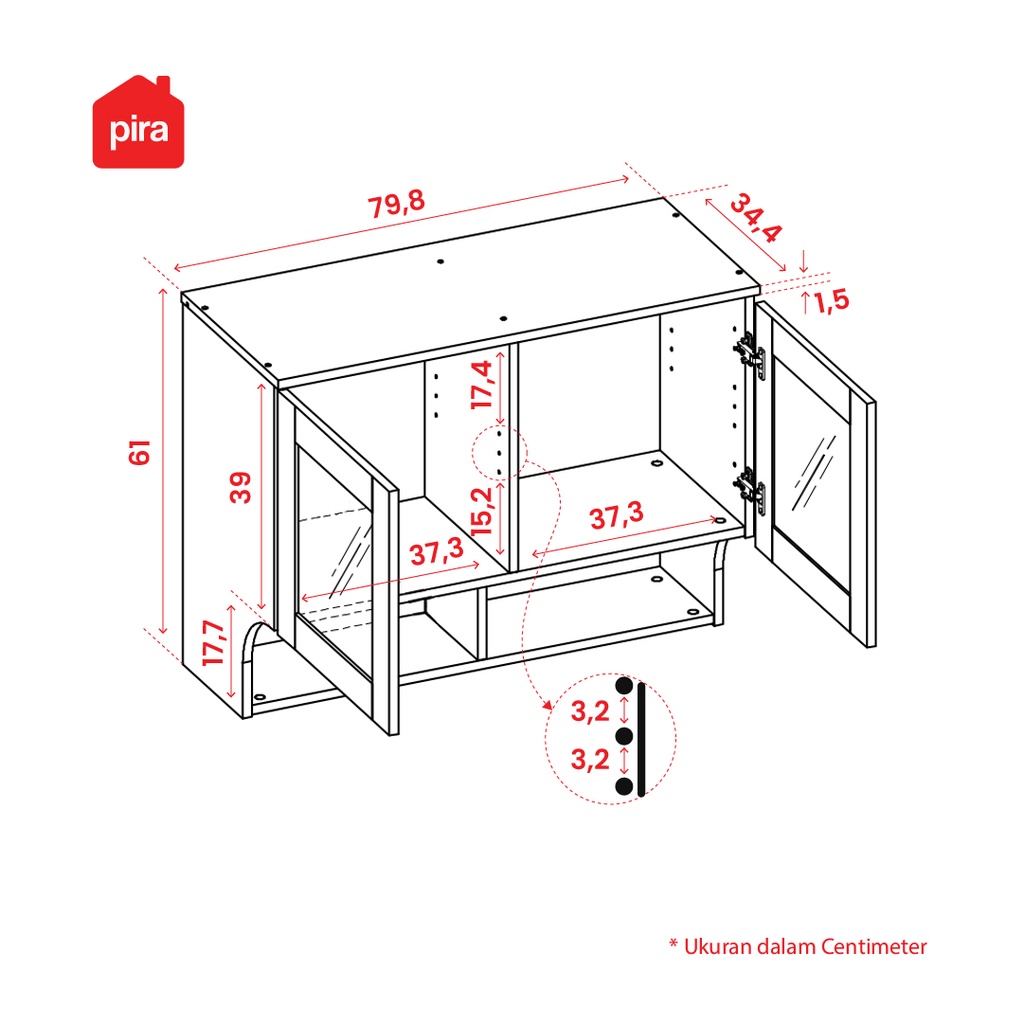 Rak Gantung Dapur 2 Pintu Dengan Rak Bumbu Pira Linus Kwu2g Srb Storage Modern