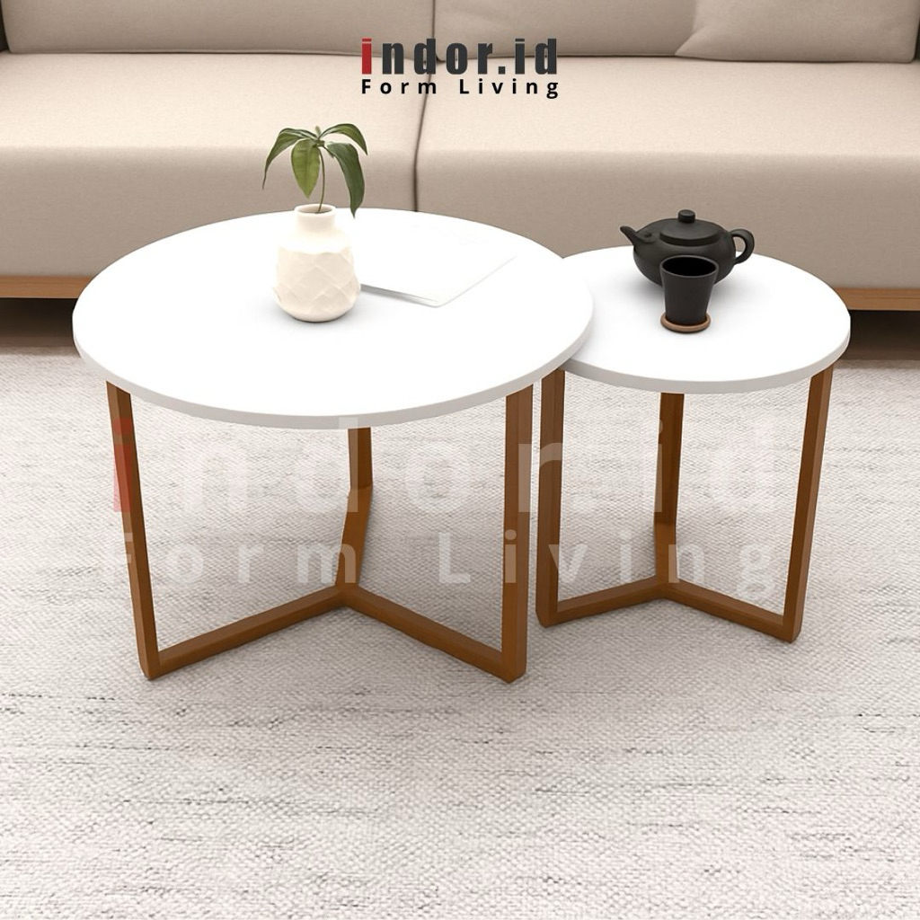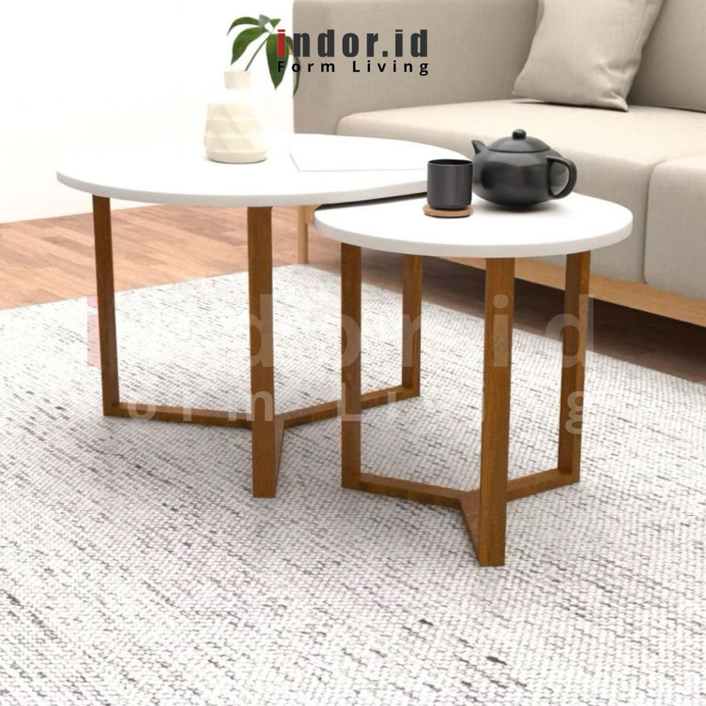 Meja Bulat Kayu Ruang Tamu Minimalis Sudut Aesthetic Mb4060 Furniture Rumah