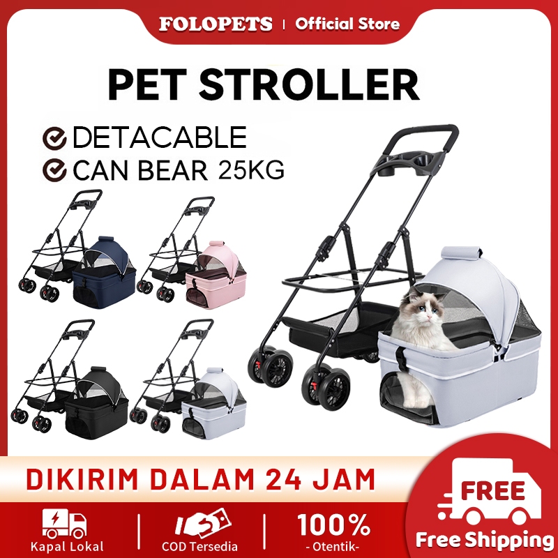 Stroller Hewan – 4 Roda, Detachable Pet Cargo – – Stroller Anjing Kucing, Pet Carrier, Pet Stroller.