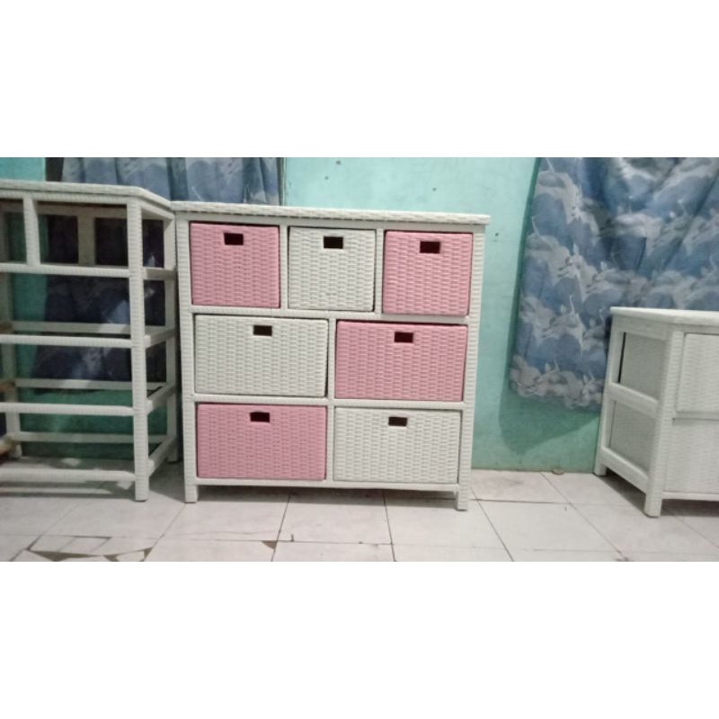 Meja Lemari Laci Rotan Sintetis 7 Laci Penyimpanan Serbaguna
